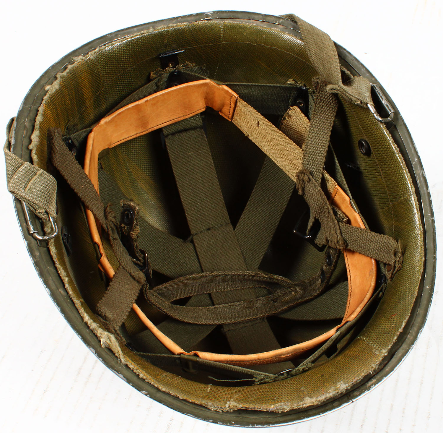 US, M1 Helmet, Has liner inside, Front marked ''V-2 76''. Grade: Very Good ++ - Value: 30 to 120
