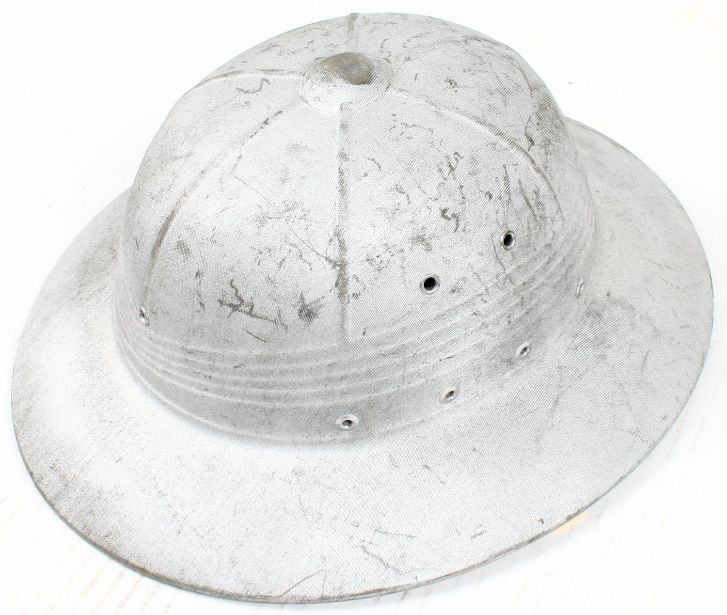 US, 1960's Sun Helmet, Has Liner, Top has scratches, rub marks & Stains, Inside is Marked, ''USN'', ''C.E.K.'', Inside has light sweat stains & light wear. Grade: Very Good ++ - Value: 10 to 60