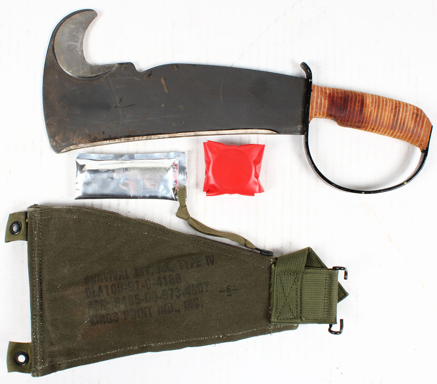 US, Vietnam Type IV Survival AX & Kit, Kit has sharping stone, shoe lace, & a item in sealed foil. Grade: Very Good ++ - Value: 100 to 200