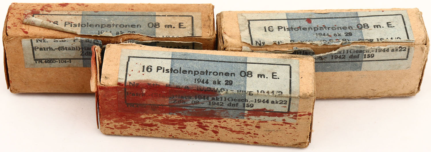 Lot of three military ammo boxes, 9mm, all Full, ammo is very good. Grade: Very Good ++ - Value: 20 to 40