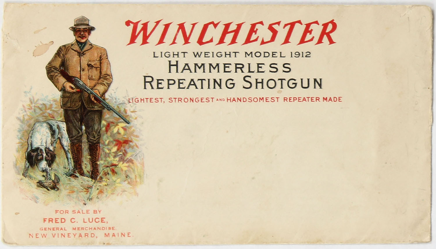 Winchester Envelope with advertising, wonderful full color image of hunter & dog with quail, wonderful red and black print on back, Unused! Grade: Excellent - Value: 50 to 200