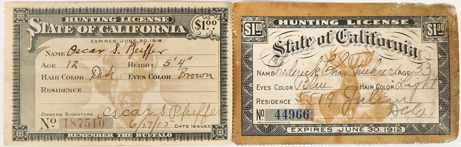Lot of 2 RARE and EARLY California Hunting License, 1912/1916. Grade: Excellent - Value: 20 to 80
