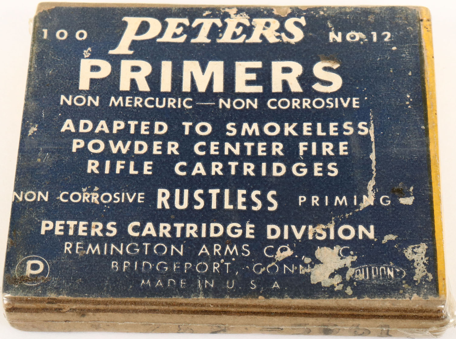 Peters Primers No 12, Full & Sealed, has scuffing. Grade: Excellent - Value: 2 to 40