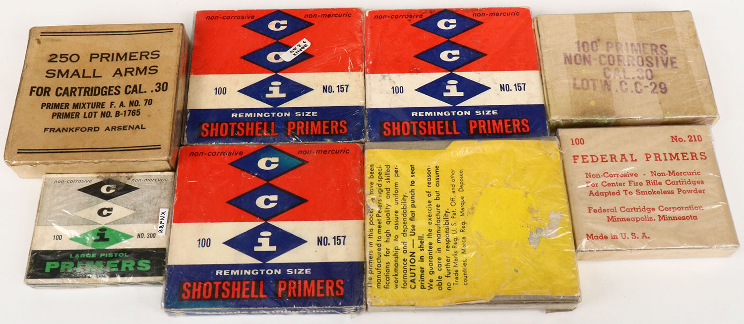 Lot of 8 Primer box, some Partial and some Full, some age soiling. Grade: Very Good ++ - Value: 20 to 80