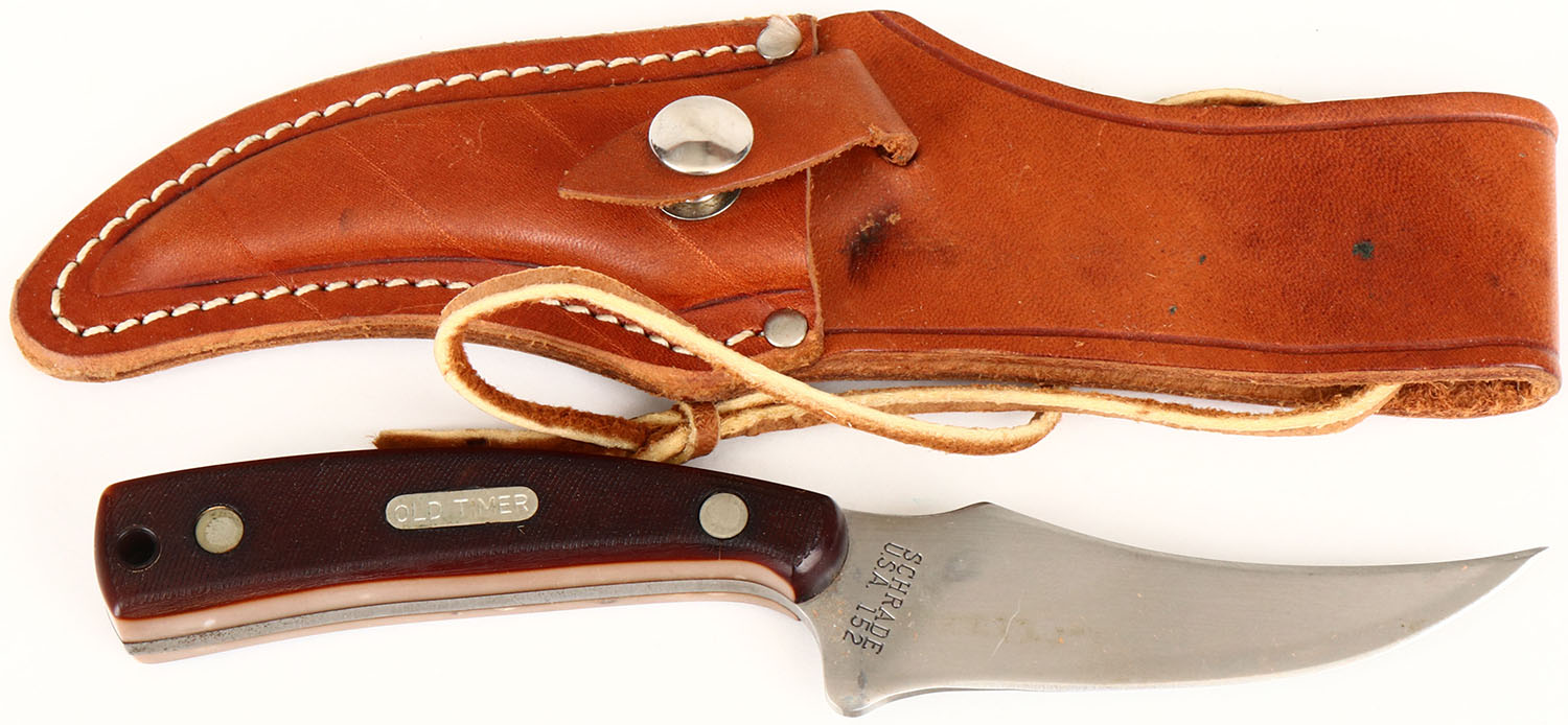 Schrade Old Timer fixed blade knife, in orignal sheath. Grade: Excellent ++ - Value: 40 to 80