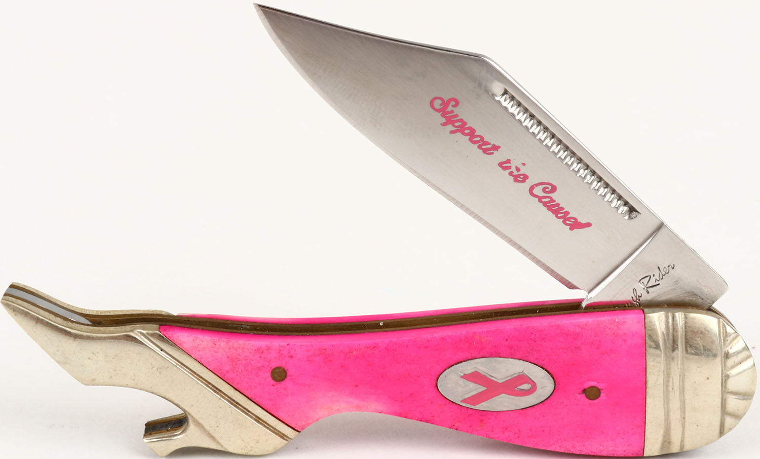 Folding knife, pink handle, Breast Caner awareness ribbon, handle in the shape of a high heel. Grade: Excellent ++ - Value: 10 to 50