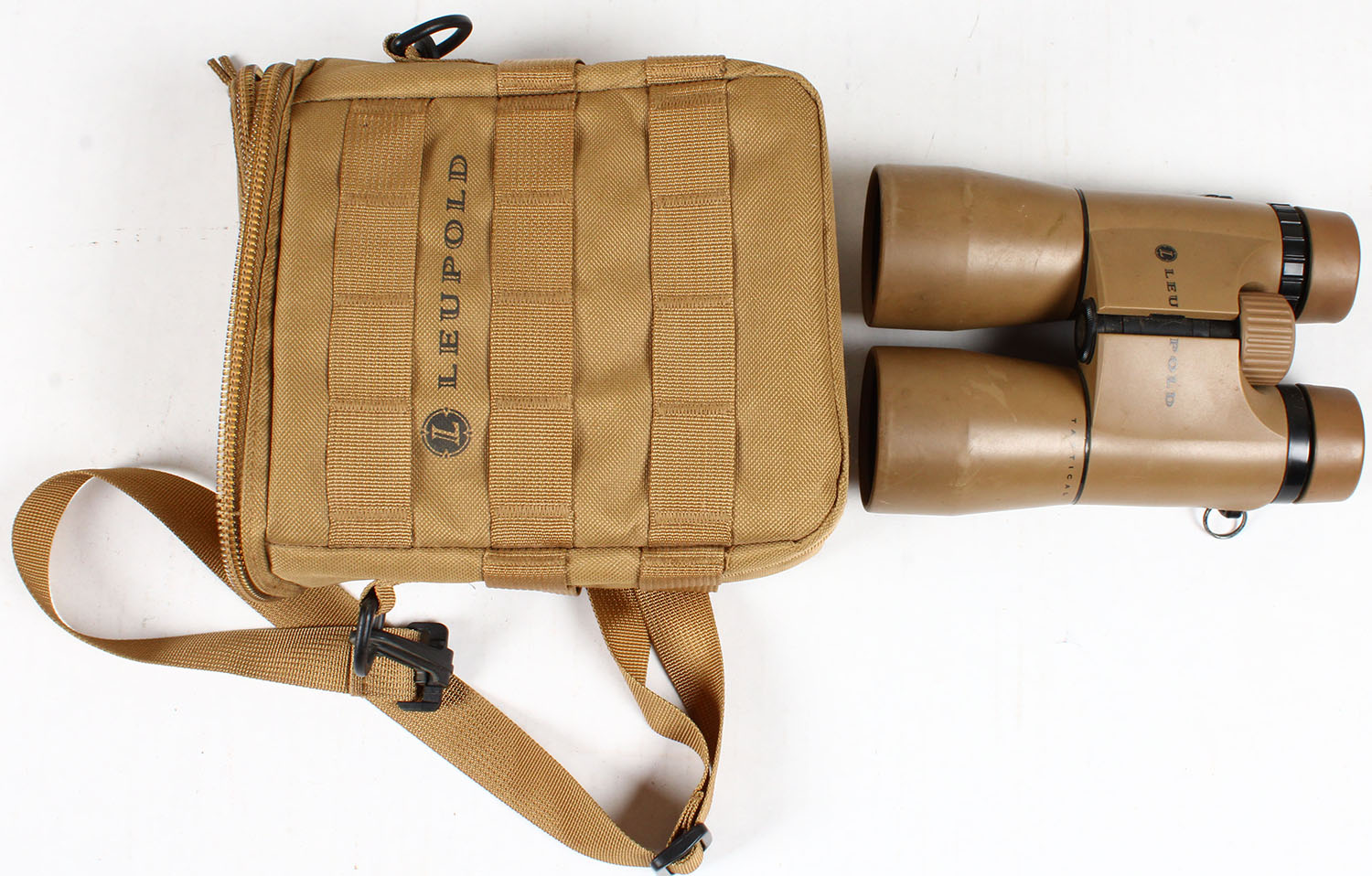 Leupold 10x50 Tactical binoculars, in orignal carrying case with strap and instructions, clear view, very solid. Grade: Excellent - Value: 200 to 600