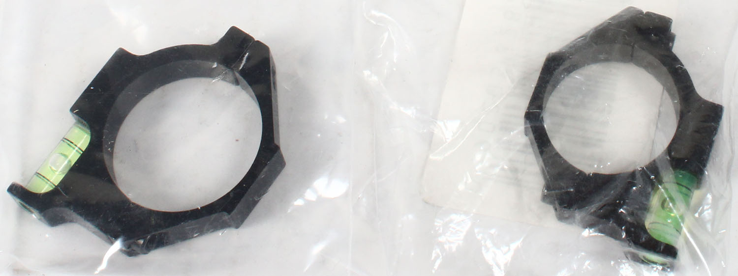 Lot of 2, scope rings with a level. Grade: Excellent - Value: 6 to 40