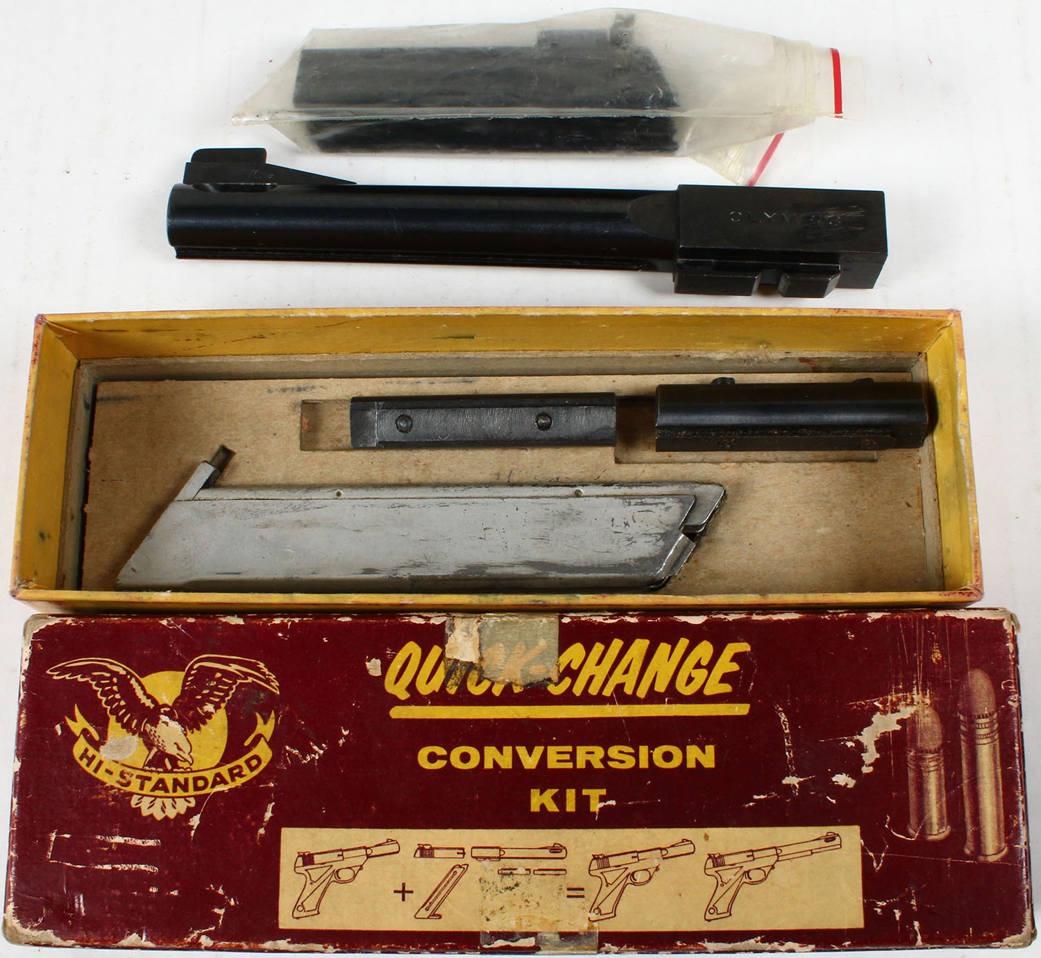 High standard conversion kit, barrel is for a .22 Short (Olympic)., full and complete, has orignal box. Grade: Excellent - Value: 50 to 500