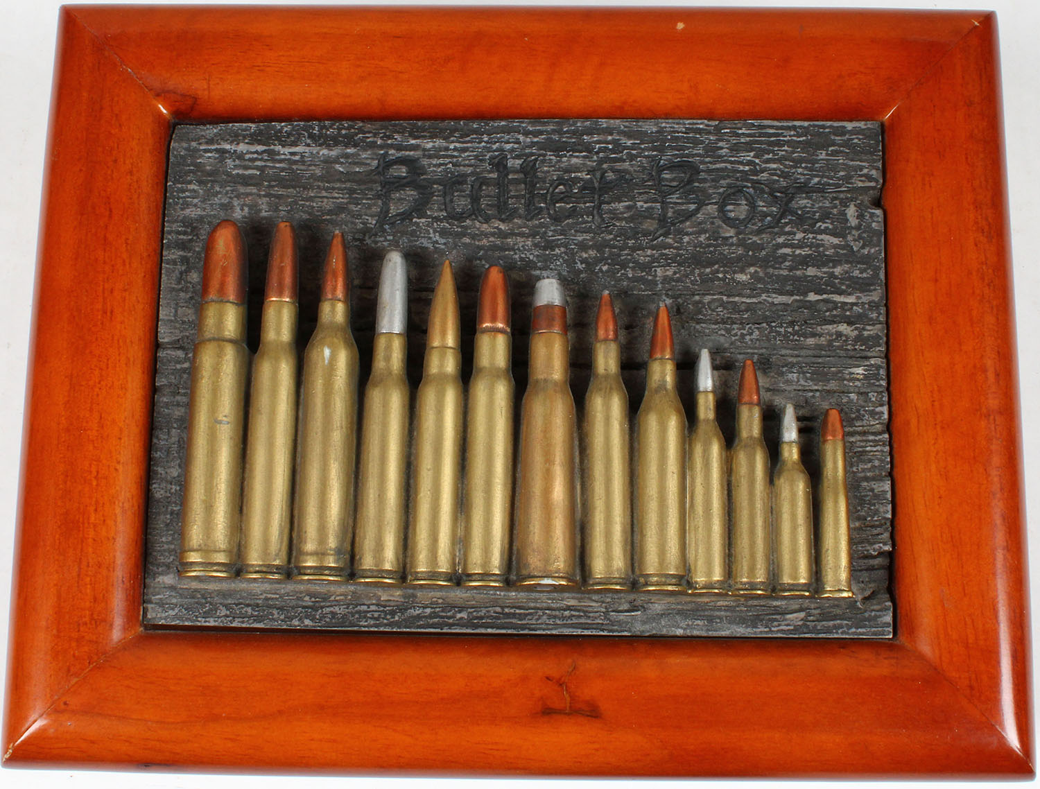 Wood Box, Bullet Box, 9'' x 7'' x 3'', solid and clean. Grade: Excellent - Value: 6 to 60