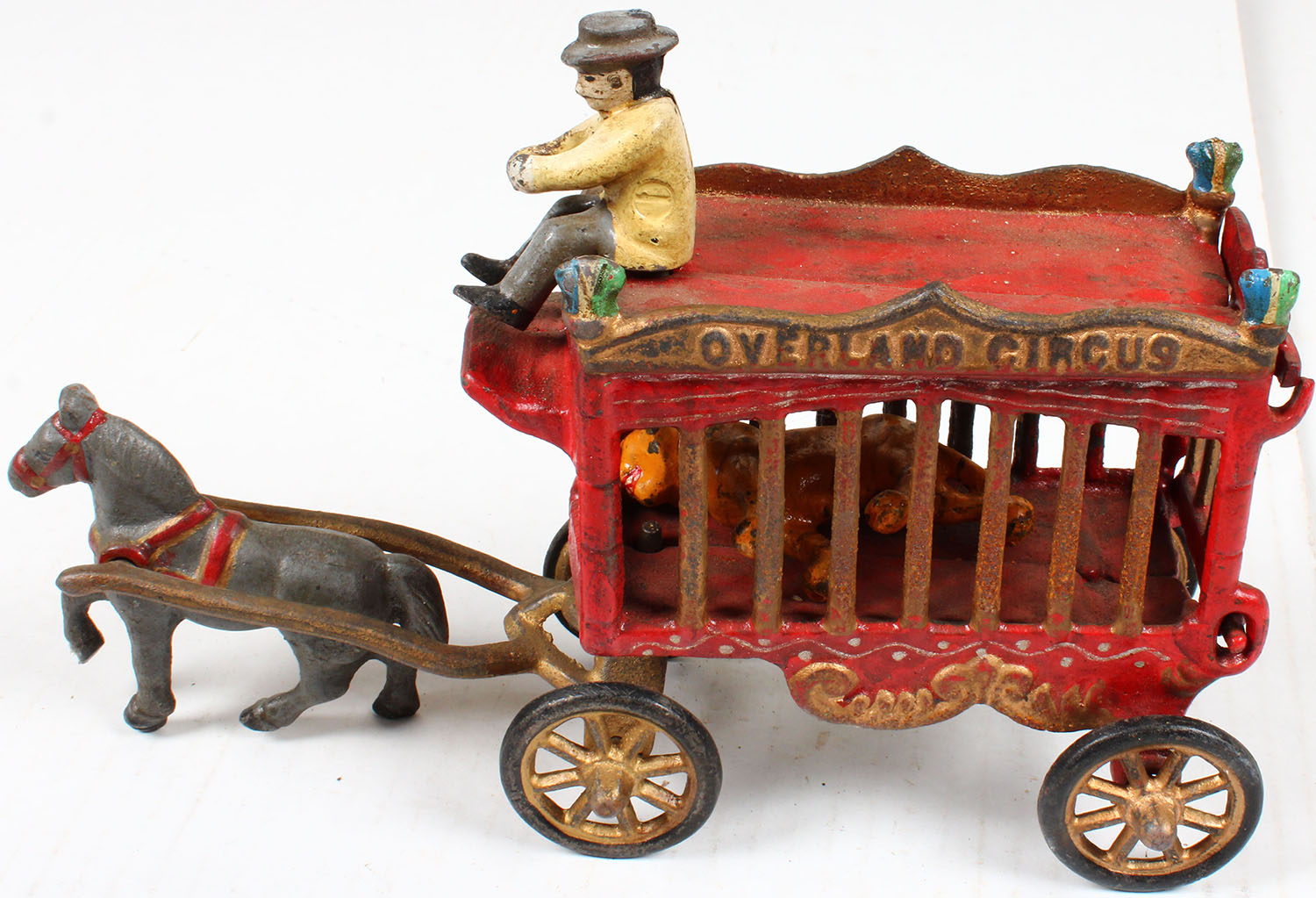 Antique die cast circus cart with animals. Grade: Very Good - Value: 10 to 50
