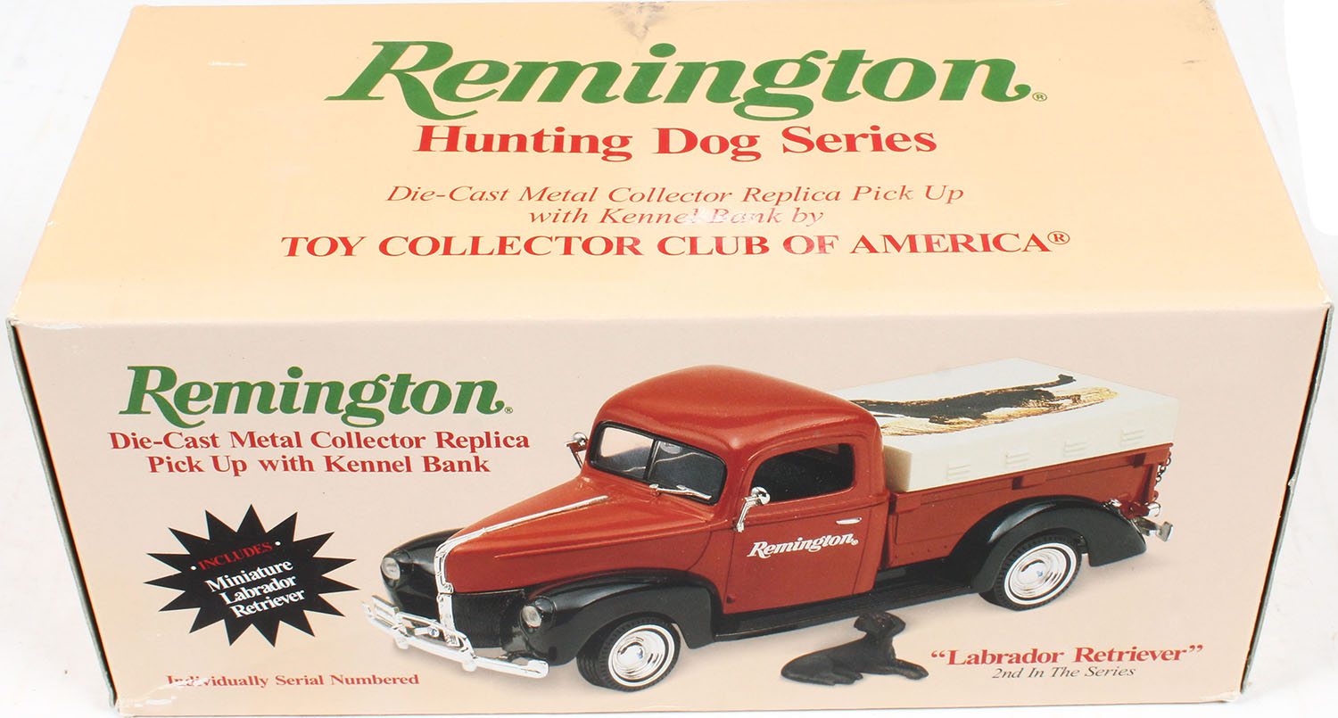 Remington truck, Labrador Retriever, Hunting Dog Series, 2nd truck in the series, in original box, NIB, very bright and clean. Grade: Excellent ++ - Value: 20 to 60