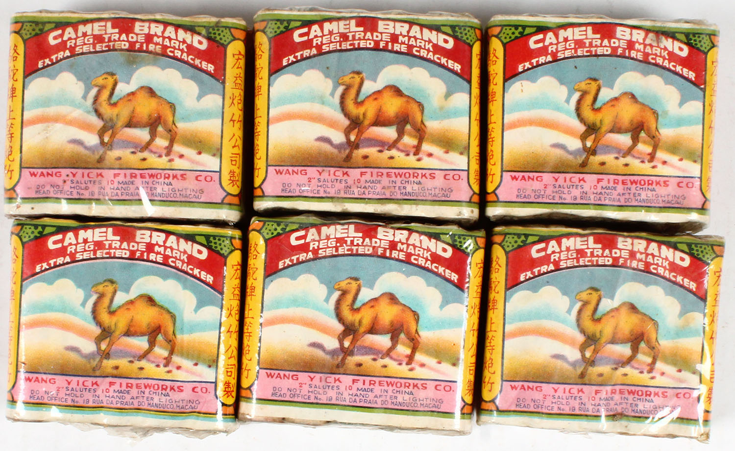 Lot of 6 sealed packages of Camel brand Fire Crackers. Grade: Excellent - Value: 10 to 60
