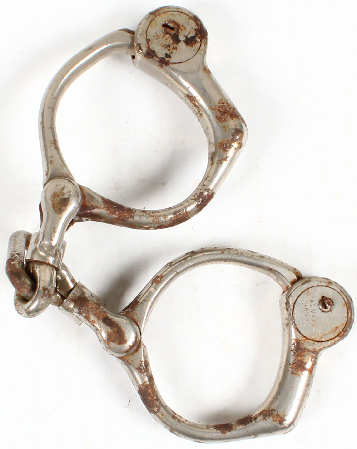 Metal Antique handcuffs, has rust, marked 1899. Grade: Very Good - Value: 20 to 200