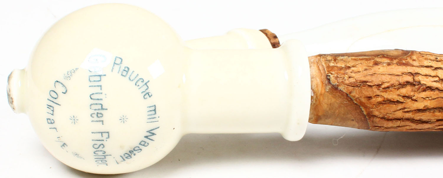 Antique German floor pipe, wood staff, porcelain bowl. Grade: Very Good ++ - Value: 2 to 100