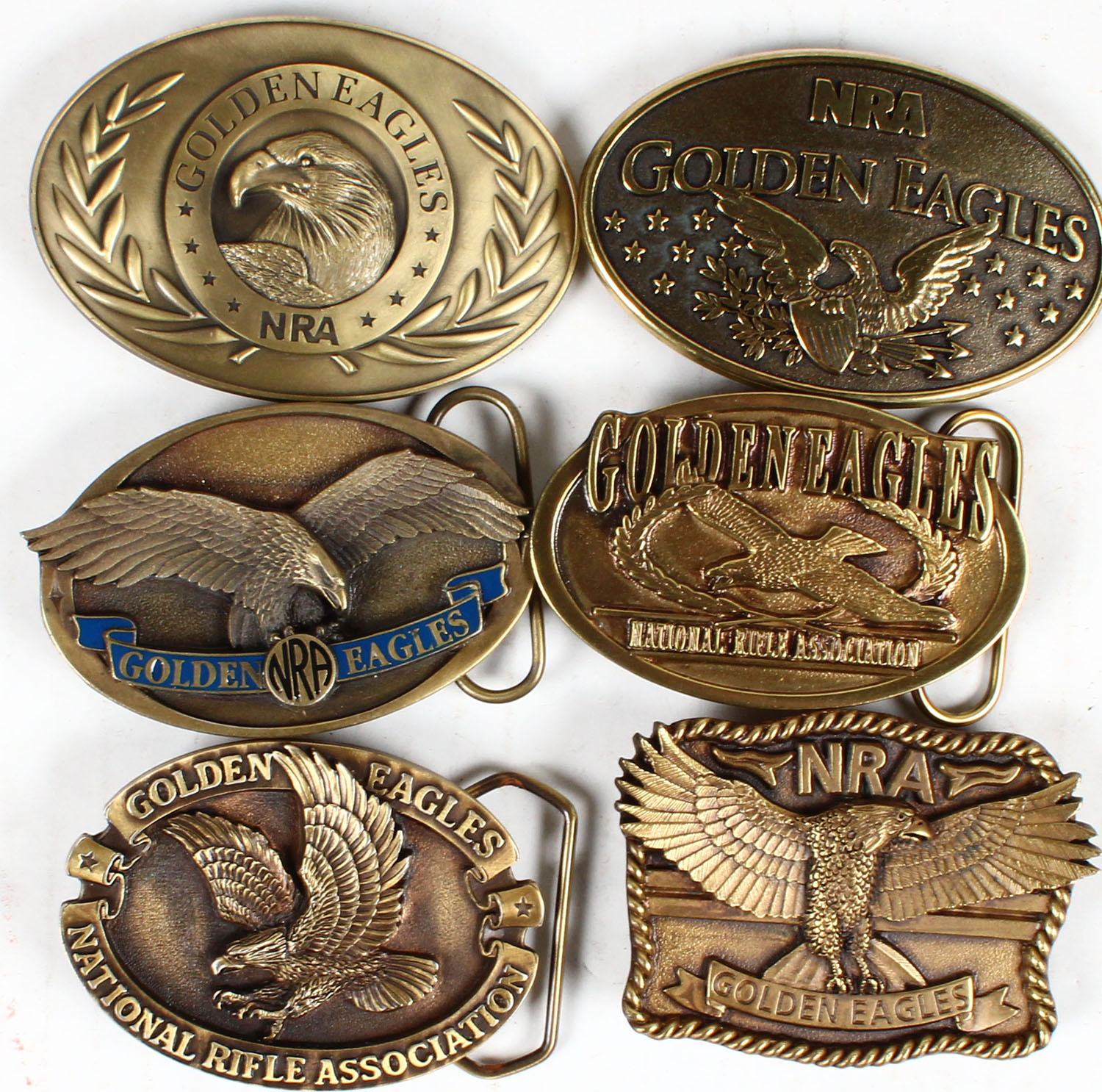Lot of 6 belt buckles. Grade: Excellent ++ - Value: 20 to 100