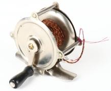 Unmarked small reel, reel turns nice, single black handle. Grade... |