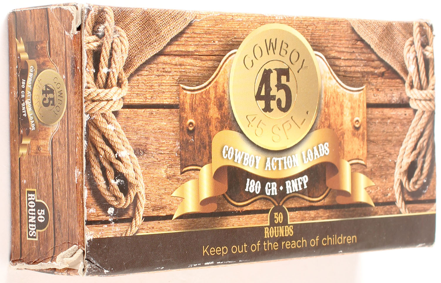 Cowboy Action Loads, .45 SPL., 180 Grain RNFP, Full, 1pc., multi-color box, box is solid with corner wear, ammo is excellent. Grade: Very Good ++ - Value: 30 to 45