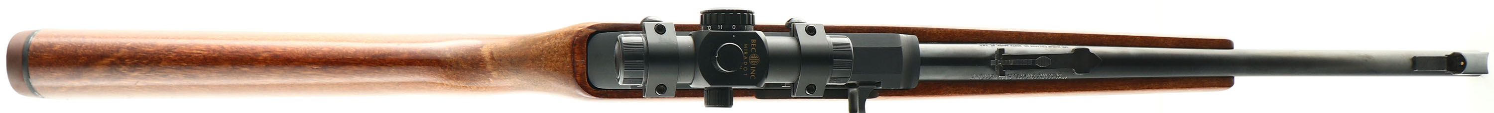 Marlin, Model 45 ''Camp Carbine'', CAL: 45 ACP, MFG: Modern, SN: 45001627, Semi Auto Rifle, 16 1/2'' barrel. The original flat pistol grip stock is excellent, with few tiny handling marks to the original finish, which is thinning a bit at the top of the wrist. The metal blue finish on the barrel rates 99% overall. Bore is excellent. The receiver carries a BEC INC. Miradot 1X20mm scope, while the barrel carries an adjustable rear & hooded blade front sights52. Stock carries a Marlin solid recoil pad. Comes with a Marlin marked detachable mag, but will fit any standard sized 7 or 7+ round M1911 single stack mag. FFL Req. - Value: 600 to 1000