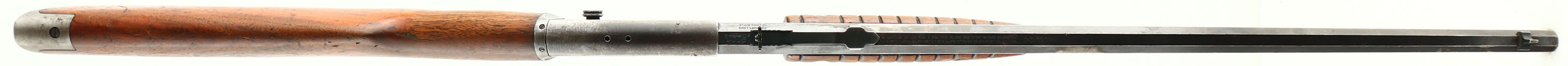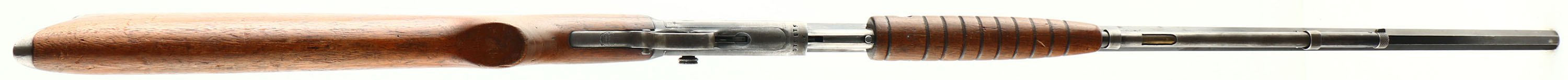 Remington, Model 12C, .22 S. L. & LR., MFG. 1909-36, SN: 513516, Pump Rifle, Take-down, 24'' Octagon barrel. The original flat pistol grip wood stocks are very good, however much of the original finish has worn away or thinned. There are numerous minor handling marks, scratches & contusions consistent with honest use. The orignal metal blue finish rates 60% on the barrel, 30% on the receiver & mag tube, with the balance worn mostly gun metal gray & a thin brown patina. Fitted with updated adjustable rear & tall blade front sights. There are two open holes on the top of the receiver & two more under the rear sight from previuos scope mounting. Bore is fair, with cleaned roughness & pitting amongst worn rifling. Original crescent metal buttplate. FFL or C&R Req. - Value: 200 to 400