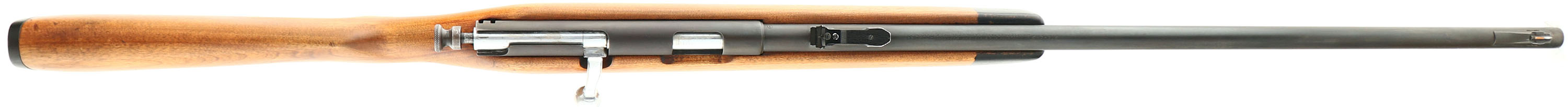 J. Stevens Arms Co., Model 56 Buckhorn Rifle, .22 S, L, LR Cal., MFG. 1935-48, SN: None, Bolt Action Rifle, 24'' round barrel. The original flat pistol grip wood stock is excellent, with some minor scrapes, contusions & scratches to the thinning original finish. The original metal blue finish is toning gray/brown, with 80% coverage. Bore is excellent. The barrel caries an updated adjustable rear & front blade sight. Stock carries the original buttplate. Nickeled bolt, bolt handle & trigger. FFL or C&R Req. - Value: 100 to 200