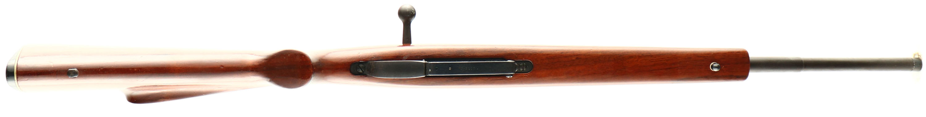 Ludwig Loewe & Co., Model: 1891 Argentino Mauser, Cal: 7.65x53mm Mauser, MFG: 1896, S/N: N 5110, Bolt action rifle, 19 7/8'' barrel. The aftermarket pistol griped, cheeked Montecarlo stock is very good near excellent, with a few minor scuffs & scratches. The blued metal finish on the barrel rates 75% with about full coverage but is starting to thin & tone to a brown patina. some deep bluing remains on the stock line & around the chamber. The blued metal finish on the receiver rates 70% with scattered spots of patina & the top of the receiver ring where the crest was buffed off is completely toned brown. S/N matching bolt, barrel, & magazine. The bore is very good. Its bright with strong rifling but roughness. The barrel holds a barleycorn front sight with white paint, & a flip up ladder V-notch rear sight marked 4 to 20. The stock carries a plastic buttplate. Rifle has both sling studs. Last year of Ludwig Loewe Co. production before they merged into DWM later in 1896. Antique, No FFL Req. - Value: 200 to 400