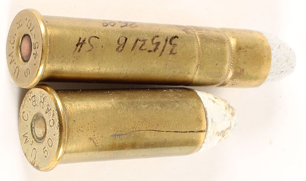 Lot of 2, (1) UMC 50 CARB, Pt. lead bullet, (1) UMC 45-70 S H, GALLERY LOAD, FNL. Grade: Very Good ++ - Value: 10 to 30
