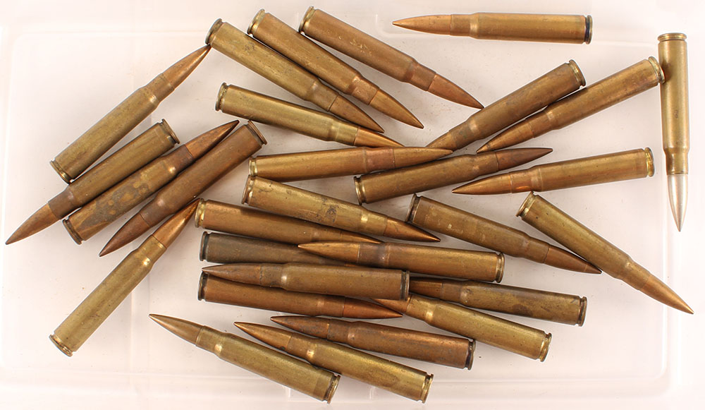 Lot of 29. 7.9x57mm Mauser. A mix of (17) Ball and (12) AP German made rounds. Various ''P'' codes. All brass case, FMJ. Grade Very Good - Value: 20 to 40