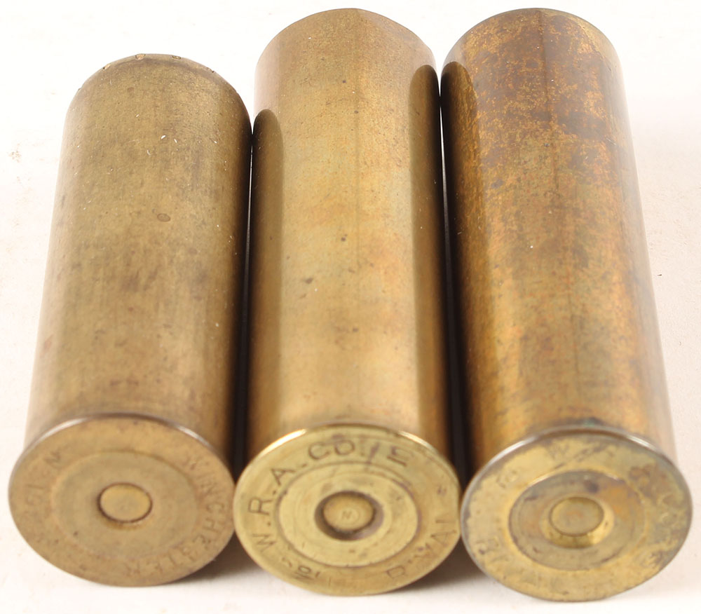 Lot of 3, Winchester, 10ga., loaded brass shot shells, (2) tan TW,(1) green TW. Grade: Excellent - Value: 10 to 40