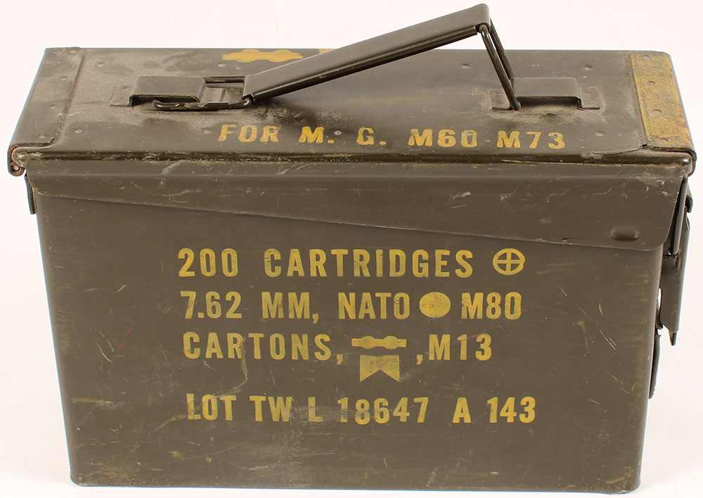 | US, M19A1 .30 Cal metal ammo can, filled with 128 Rds. Of Surplu...