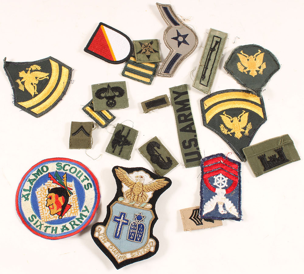 Large lot of Military patches & pinbacks. Grade: Very Good ++ - Value: 4 to 100