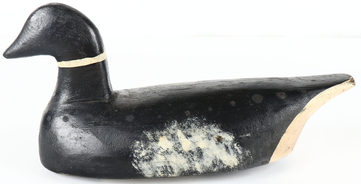 Pacific Brant made by Slim Cameron, Ladner, BC Canada, no eyes, 2-piece hollow red cedar, structurally excellent, excellent original paint, ex-collection of Ira Yeager, Bellingham WA. Grade: Excellent - Value: 100 to 800