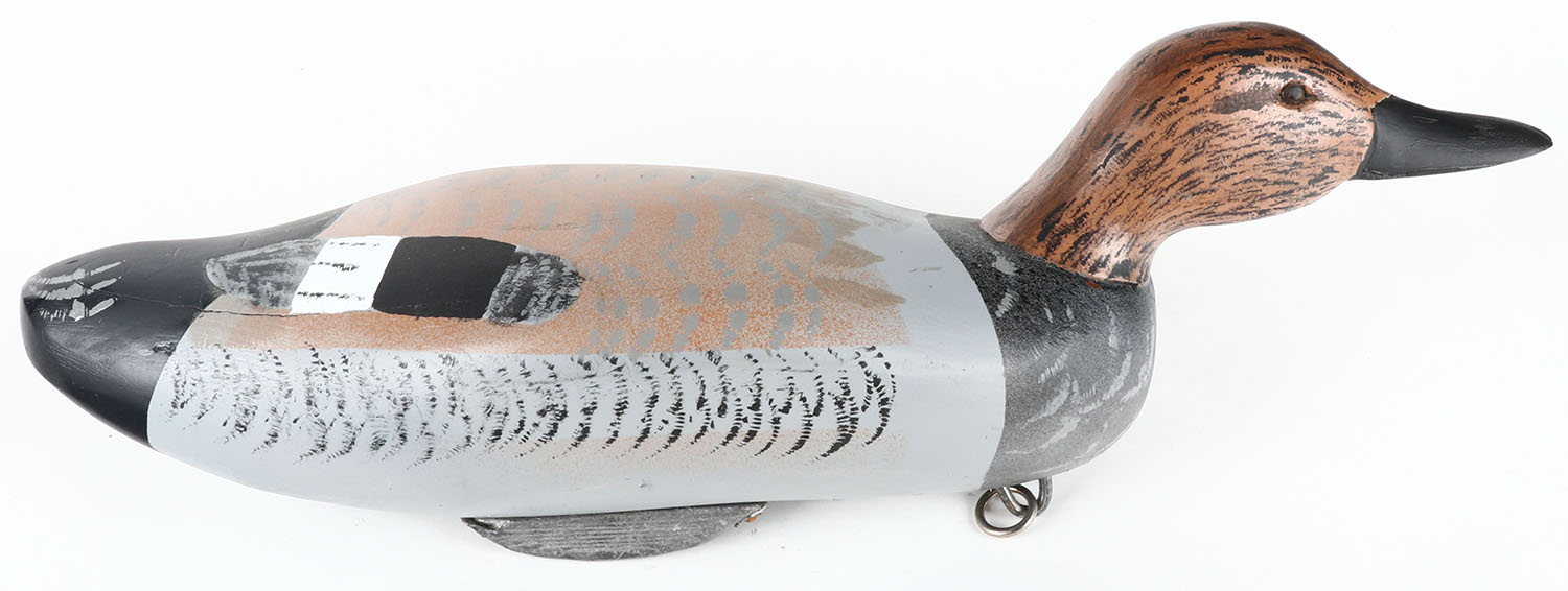 Swimming Gadwall drake by unknown MD maker, carved eyes, solid wood, original paint, structurally excellent. Grade: Excellent + - Value: 30 to 90