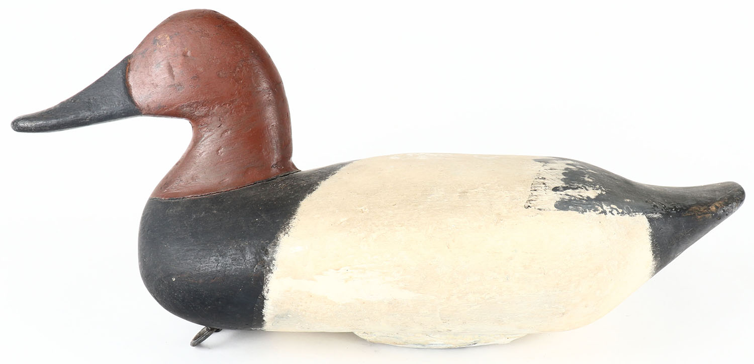 Canvasback Drake by unknown maker, PE, solid wood, repaint, structurally excellent, 15'' OAL. Grade: Very Good ++ - Value: 30 to 60