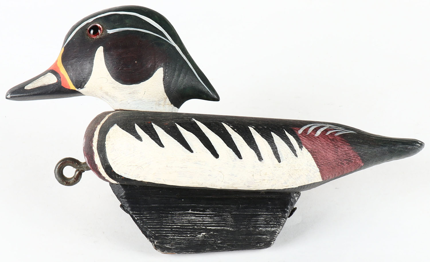 Woodduck Drake by unknown maker, GE, solid wood, original paint, 9'' OAL. Grade: Excellent - Value: 16 to 40