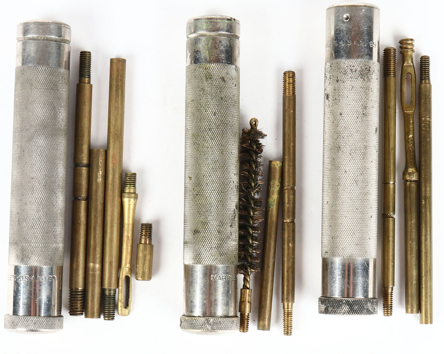 Lot of 3 marbles pistol cleaning rods in metal case. Grade: Excellent - Value: 20 to 50