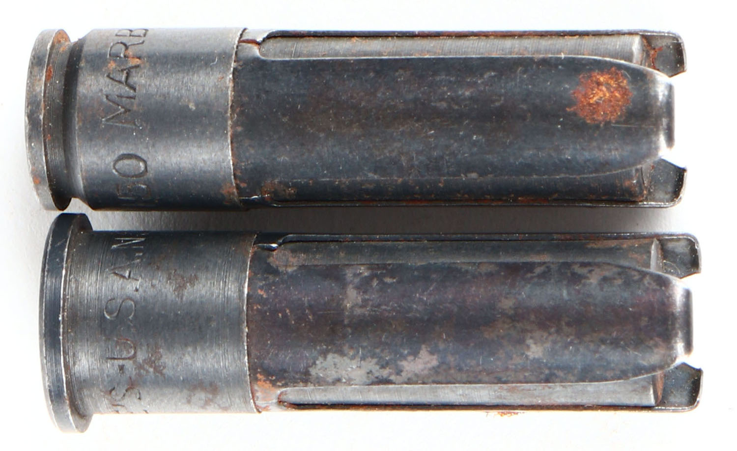 Lot of (2) Marbles Auxiliary carts, (1) No. 151 (.30-30 Win. - .32 Short Colt), (1) No. 150 (.25-35 Win. - .25 Auto.). Grade: Excellent - Value: 6 to 40
