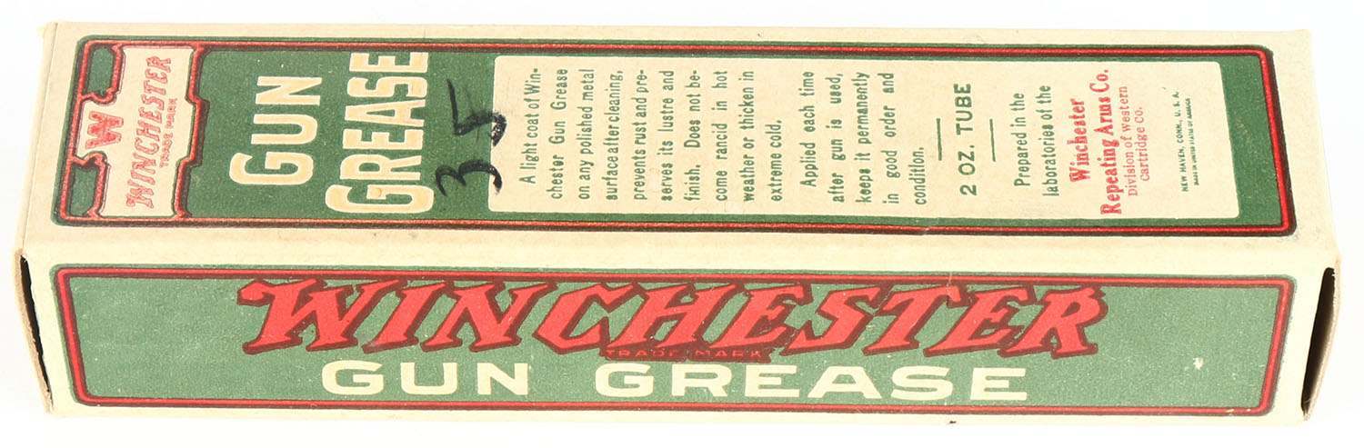 Winchester Gun Grease tube, appears unused, in orignal box, all bright and clean. Grade: Excellent ++ - Value: 30 to 90