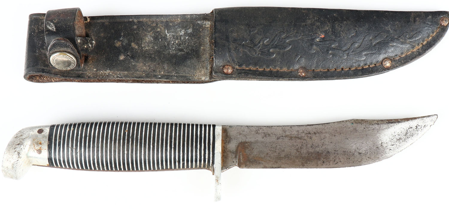Fixed blade knife, has rust and leather sheath. Grade: Excellent - Value: 4 to 40