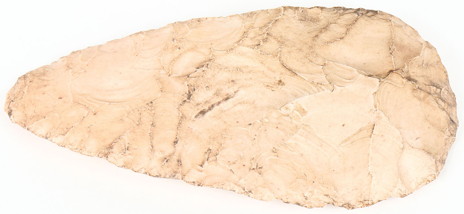 Native American museum quality massive prehistoric flint hoe 8 1/2'', Grade: Excellent - Value: 20 to 600