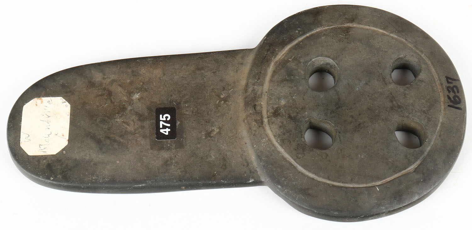 Very Rare Mississippian Mound Builder slate Gorget with four holes, 6 1/2'' oal, Grade: Excellent - Value: 20 to 900