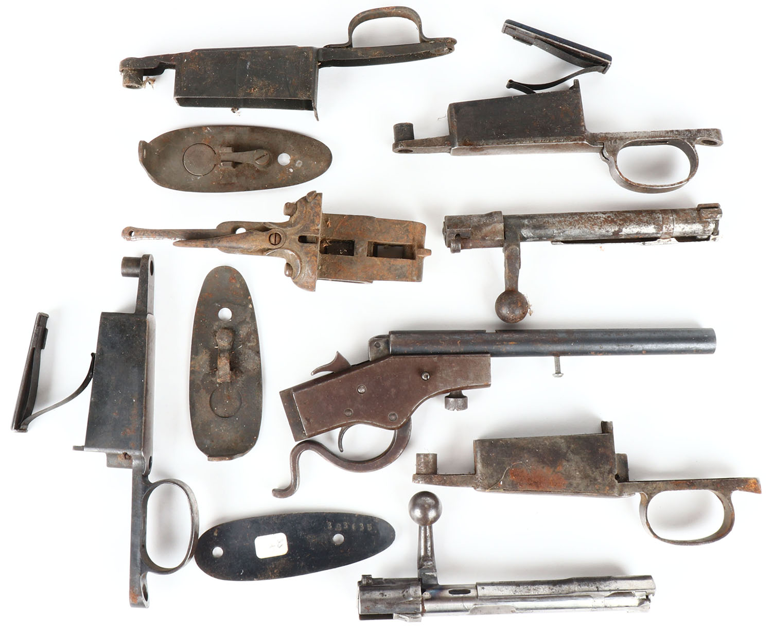 Gun parts, Very large lot of gun parts bolts, trigger assemblies and etc. Grade: Excellent - Value: 40 to 150