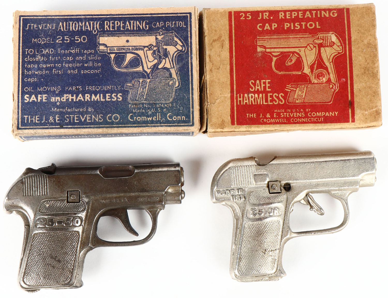 Lot of 2 Vintage Cap pistols, jr repeating cap pistol and Steven auto repeating cap psitol. Grade: Excellent - Value: 20 to 60