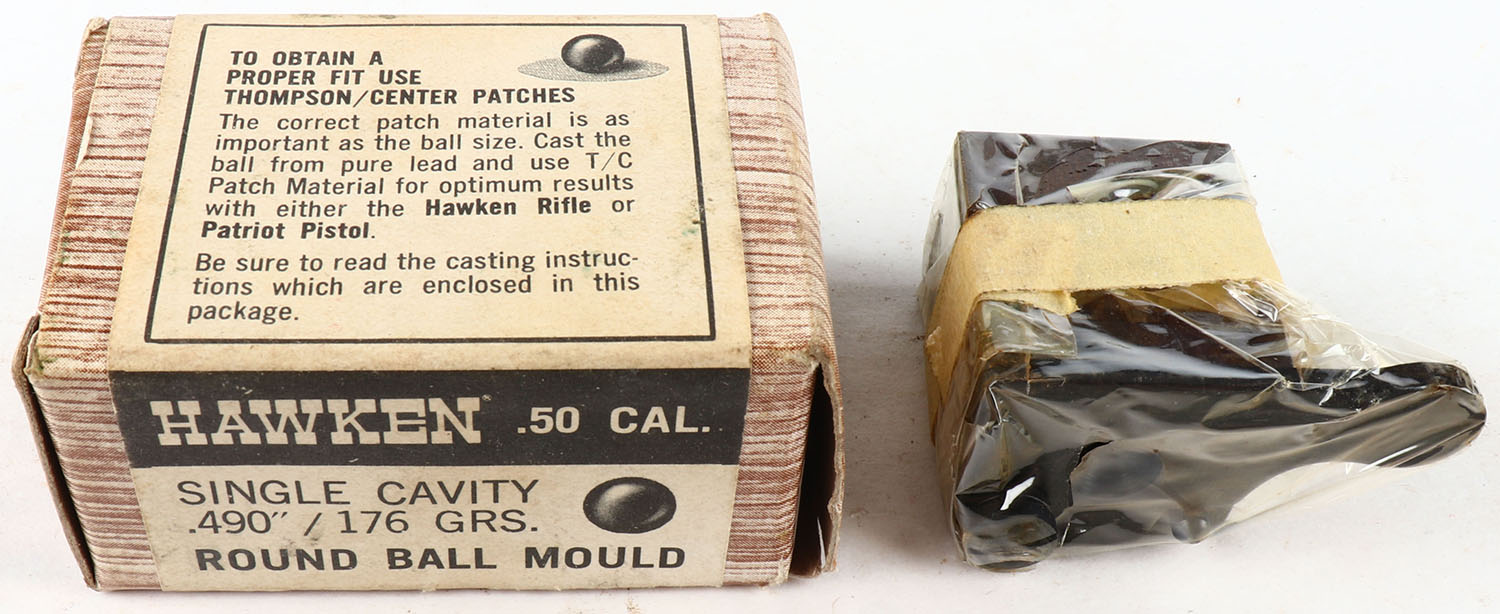 Hawken bullet mould block in orignal boxes, .50 cal round ball moulds. Grade: Excellent - Value: 16 to 50
