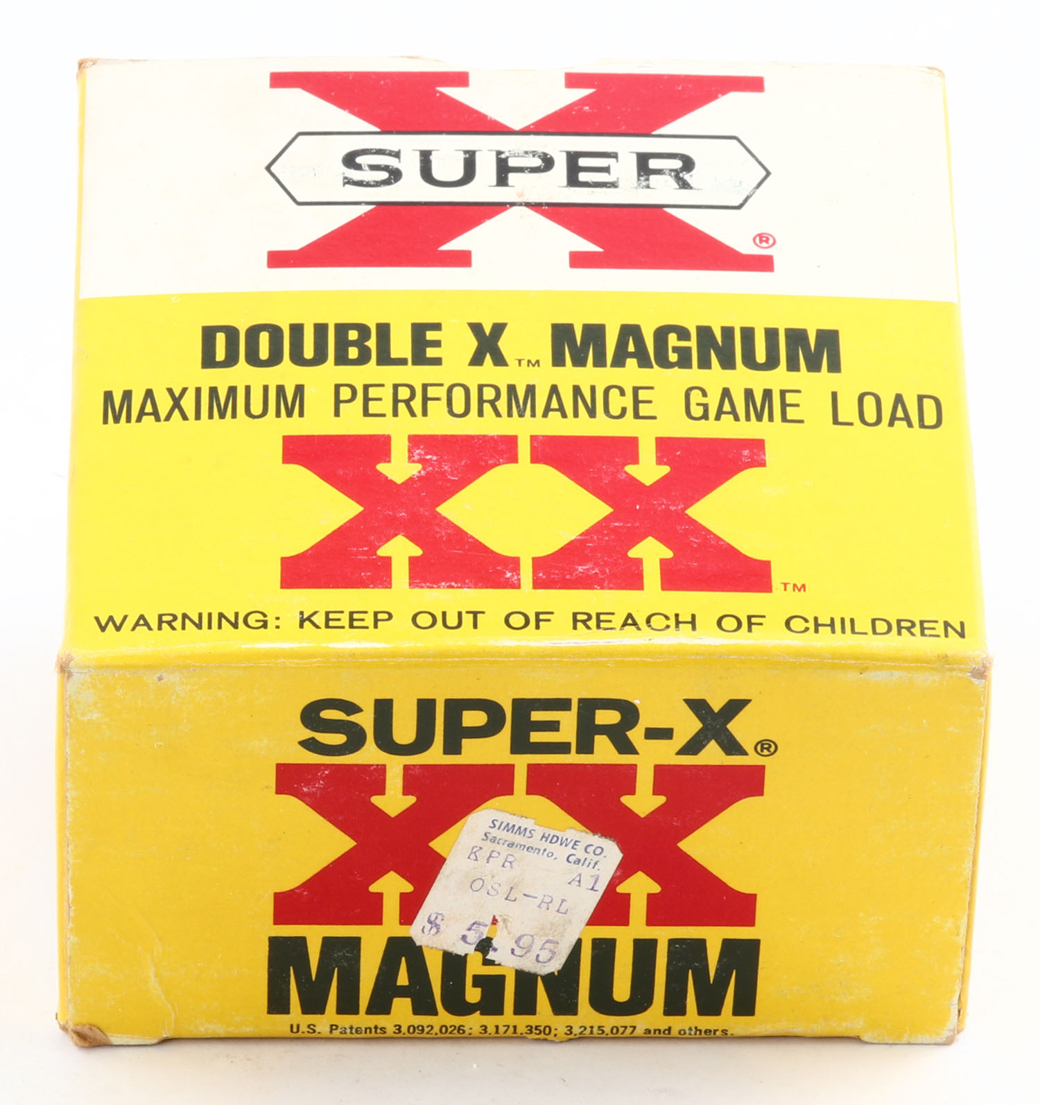 Winchester, Super X, Double X Magnum, 12ga, 1pc., Full, multi-colored box, shot size 4 Magnum, box is very solid with excellent colors, plastic shells are excellent. Grade: Excellent + - Value: 20 to 50