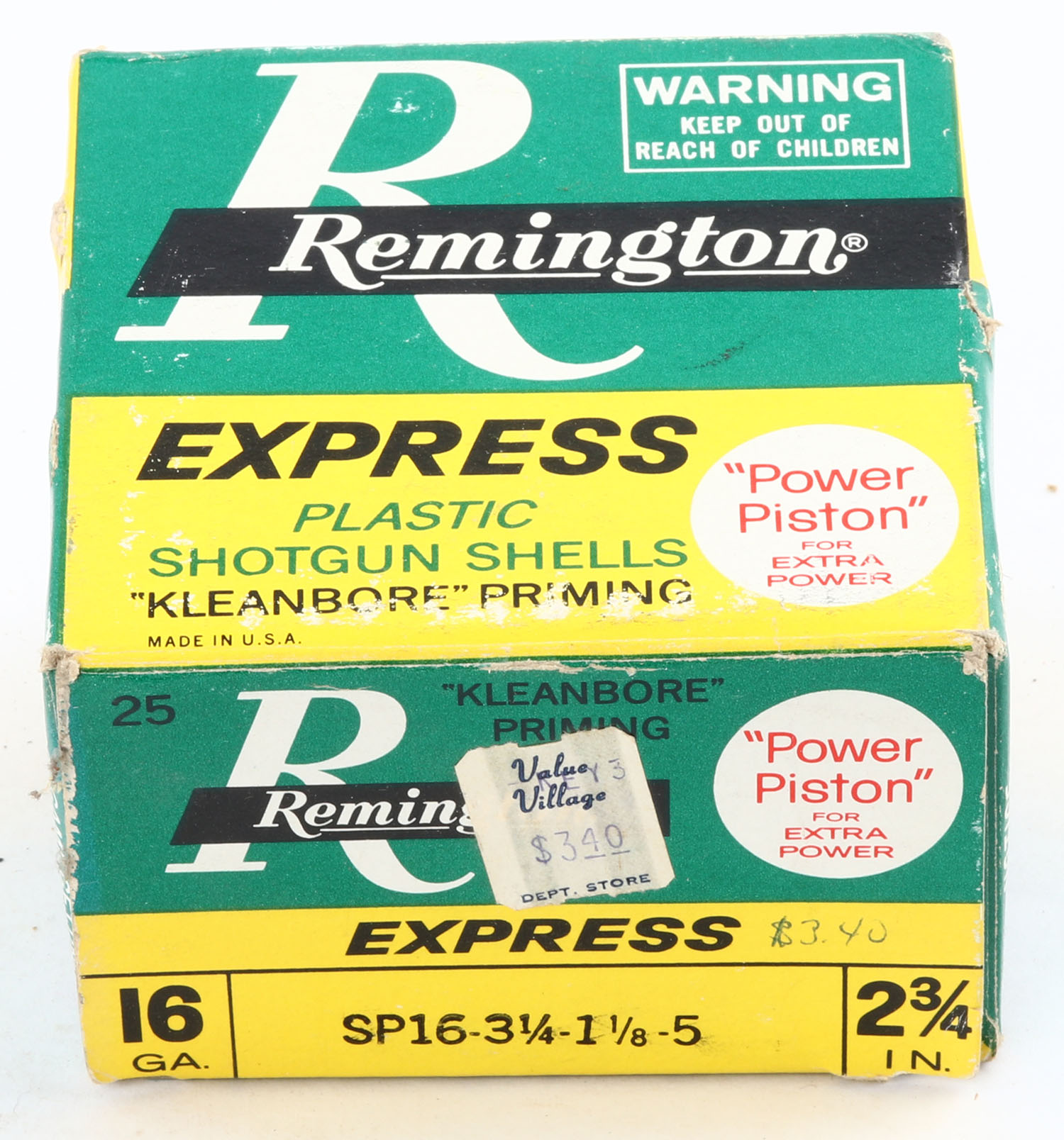 Remington Express, 16ga., 2 3/4'', 1pc., Full, shot size 5, multi-colored box, box is solid with very nice colors, plastic shells are excellent. Grade: Very Good ++ - Value: 10 to 30