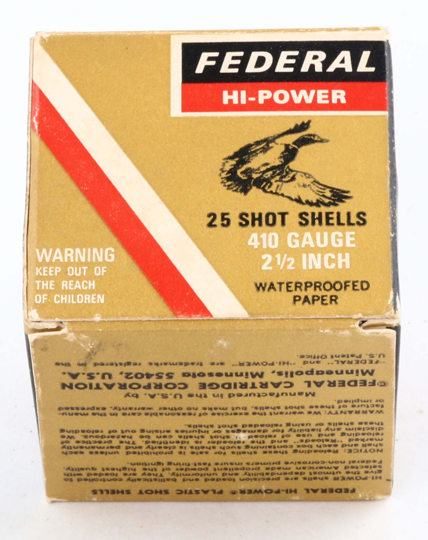 Federal, Hi-Power, 410ga., 1pc., Full, shot size 6, 2 1/2'', box is very solid with great colors, paper shells are excellent. Grade: Excellent + - Value: 10 to 30