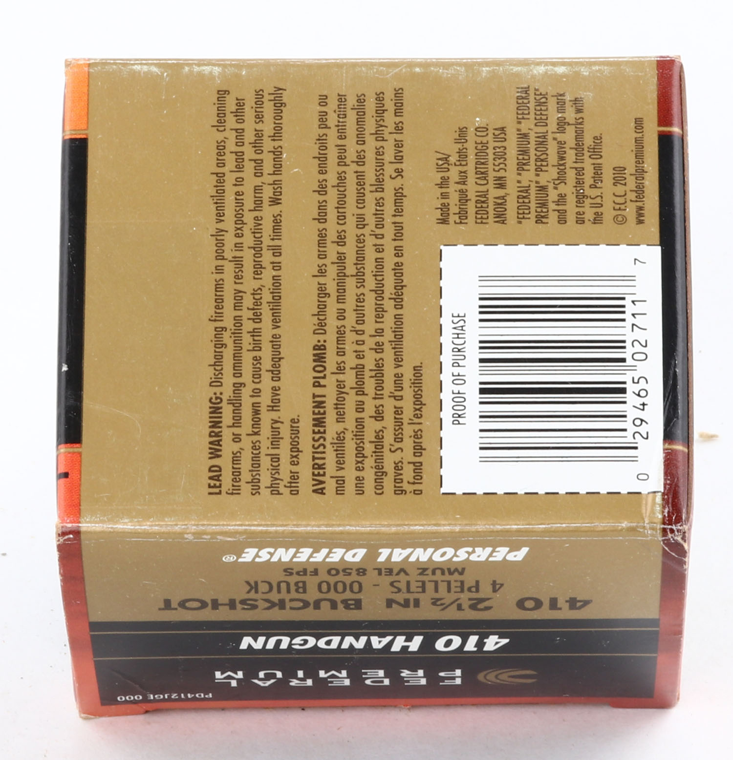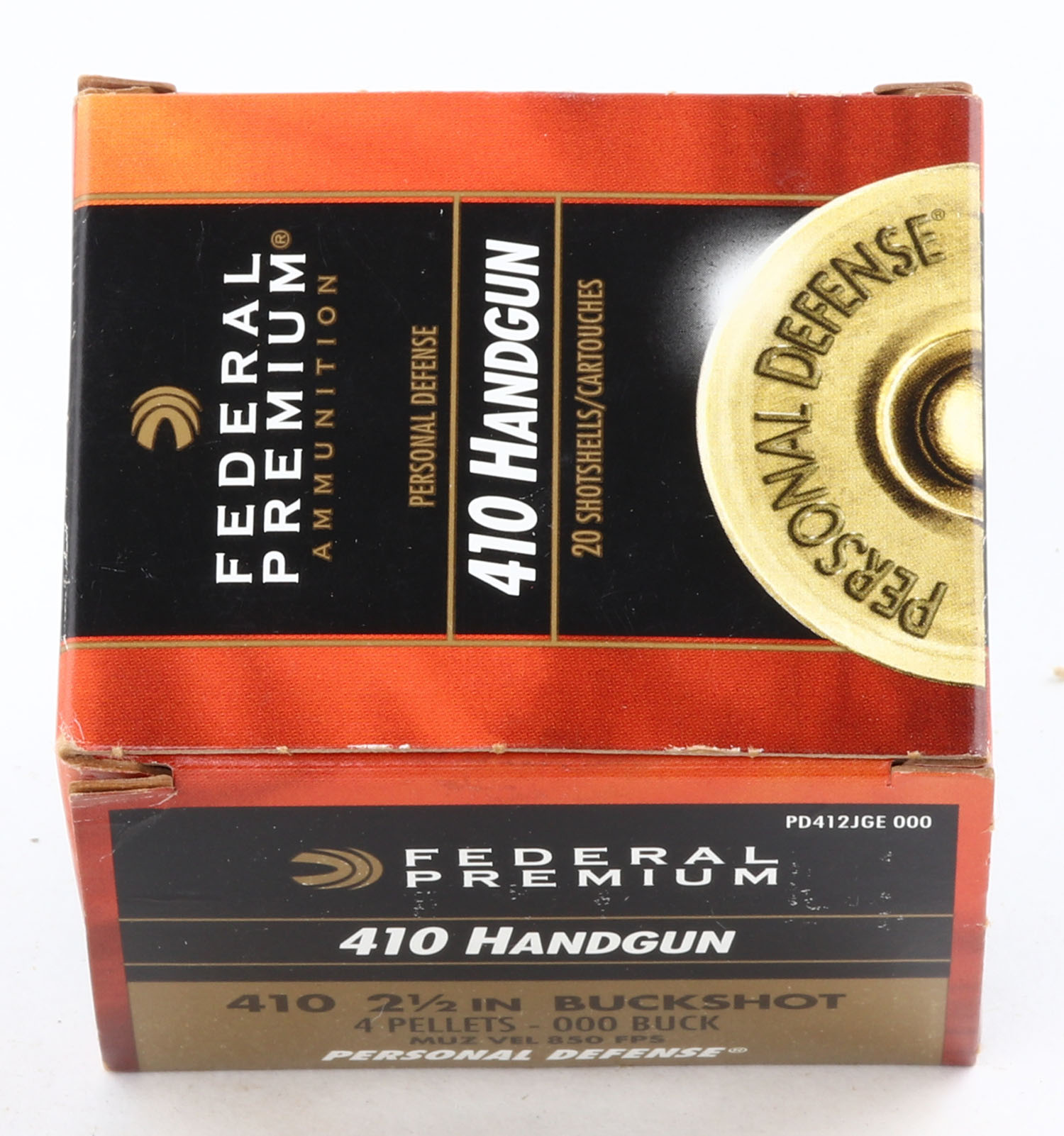Federal, Premium Handgun, 410ga., 1pc., Full, shot size 000 Buck, multi-colored box, box is very solid, plastic shells are excellent. Grade: Excellent ++ - Value: 10 to 30