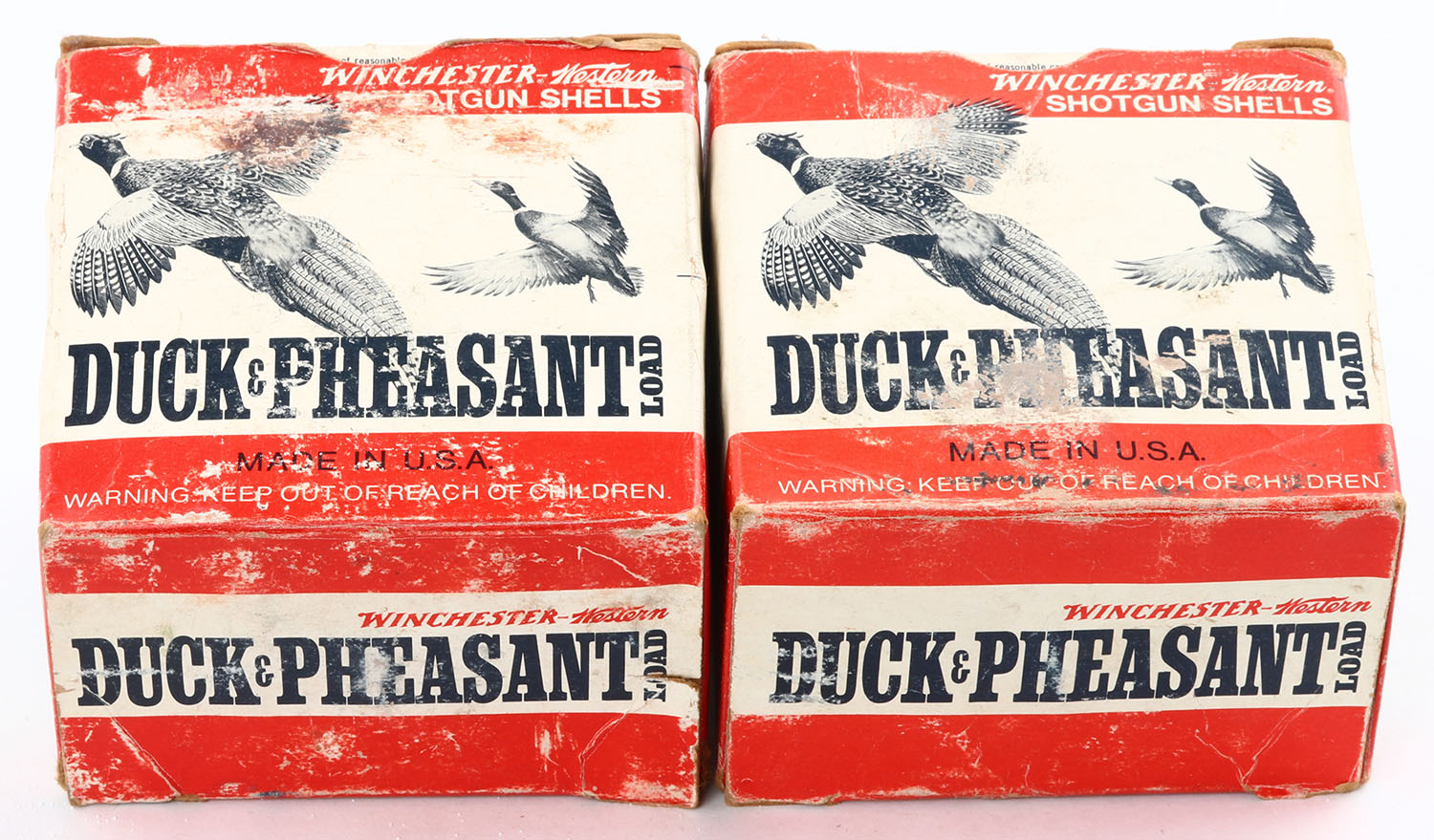 Lot of 2 Winchester-Western, Duck & Pheasant, 16ga., 1pc., Appears Full, shot size 6, 2 3/4'', multi-colored boxes. Grade: Very Good ++ - Value: 10 to 40