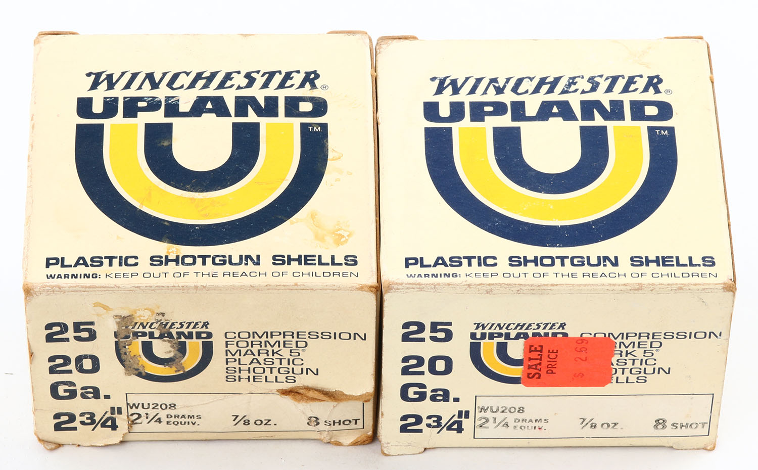 Lot of 2 Winchester, 20ga., 1pc., Appears Partial, shot size 8, multi-colored boxes. Grade: Very Good - Value: 10 to 40
